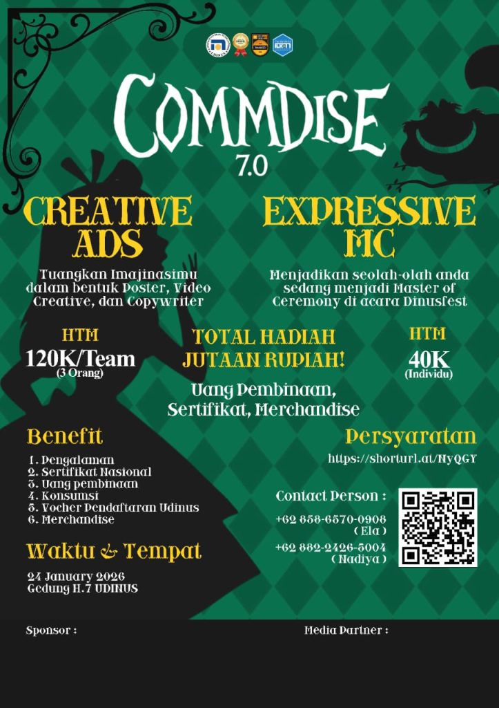 COMMDISE 7.0 oleh dwiapy | Des 30, 2025 | DINUS FEST 2026 - EVENT MAHASISWA/UMUM, DINUS FEST 2026 - EVENT SMA/SMK/MA | 0 Komentar PETUNJUK-PELAKSANAAN-DAN-PETUNJUK-TEKNIS-COMMDISE-7.0-FIX.docxUnduh Kirim Komentar Batalkan balasanAlamat email Anda tidak akan dipublikasikan. Ruas yang wajib ditandai *Komentar * Nama * Email * Situs Web